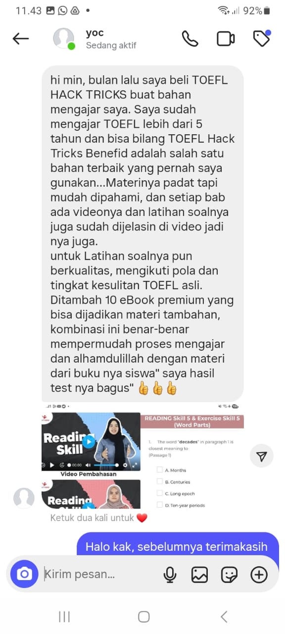 Kamu dapat masa mengakses video full penjelasan dari buku 4 TOEFL HACKTRIKS dan akan di jelaskan langsung oleh tutor senior Kampung Inggris Pare